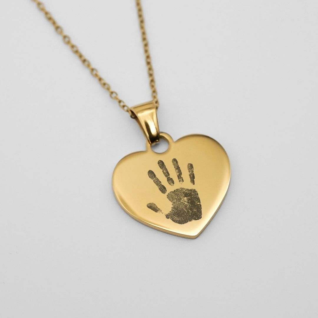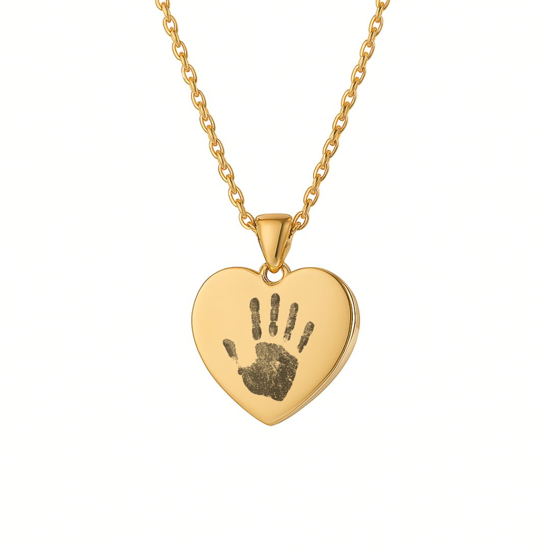 Unsere personalisierte Herz-Halskette mit Handabdruck ist ein emotionales Schmuckstück und ein liebevolles Andenken an besondere Momente – perfekt für Mütter, Väter, Großeltern oder als Taufgeschenk.