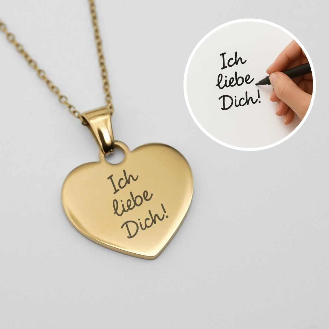 Gravierte Herz-Halskette mit eigener Handschrift