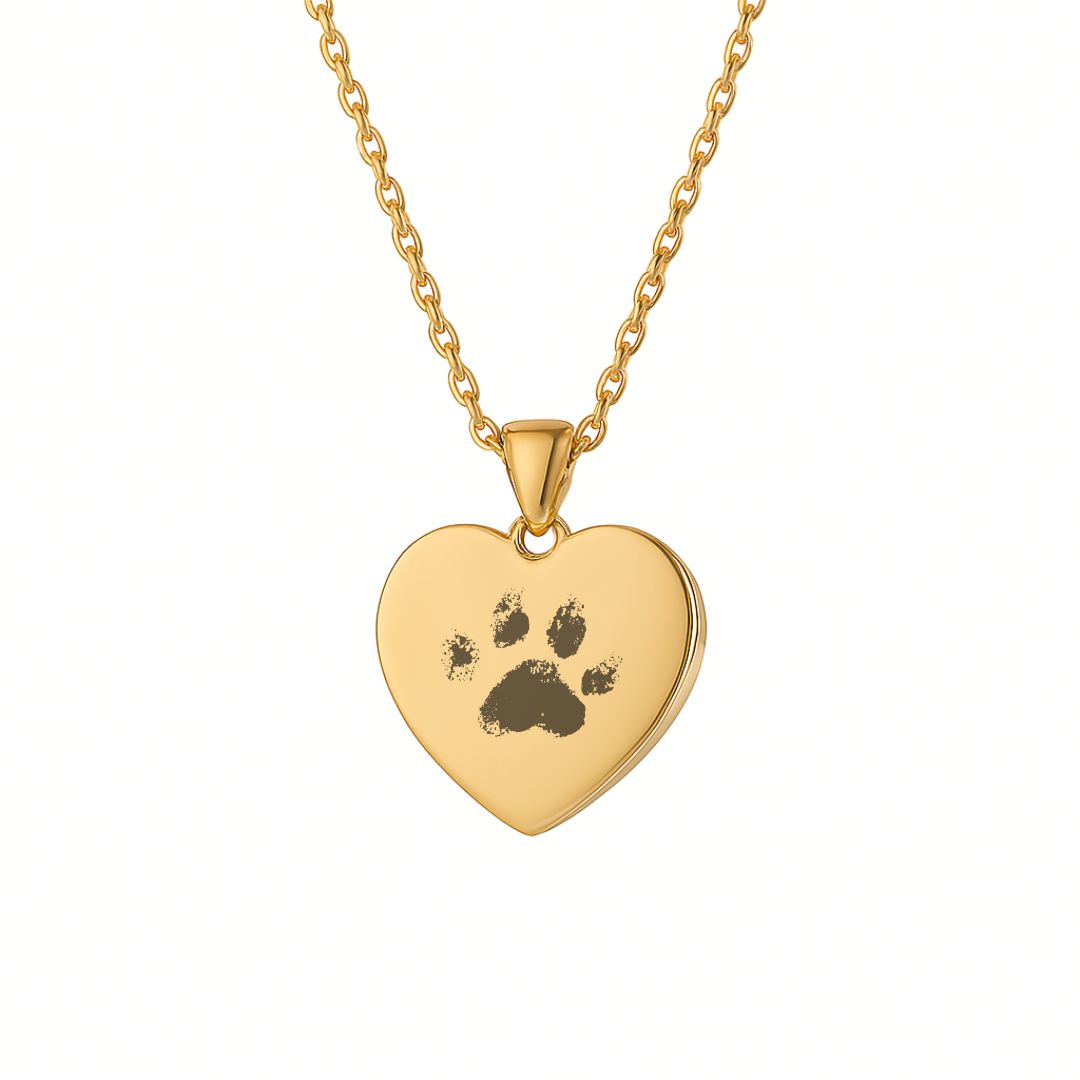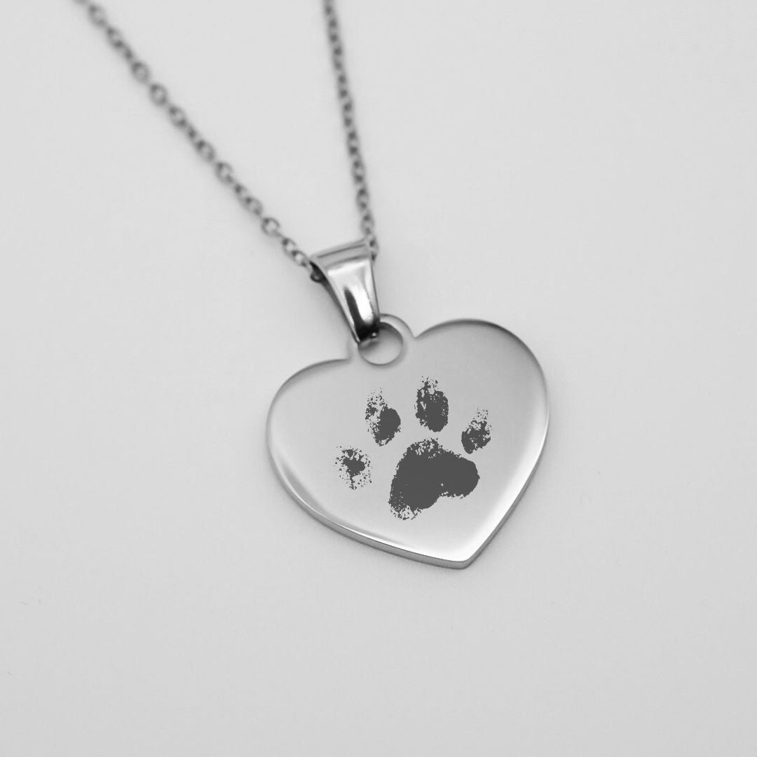 Gravurkette Herz mit Pfotenabdruck - Haustier Erinnerungsschmuck