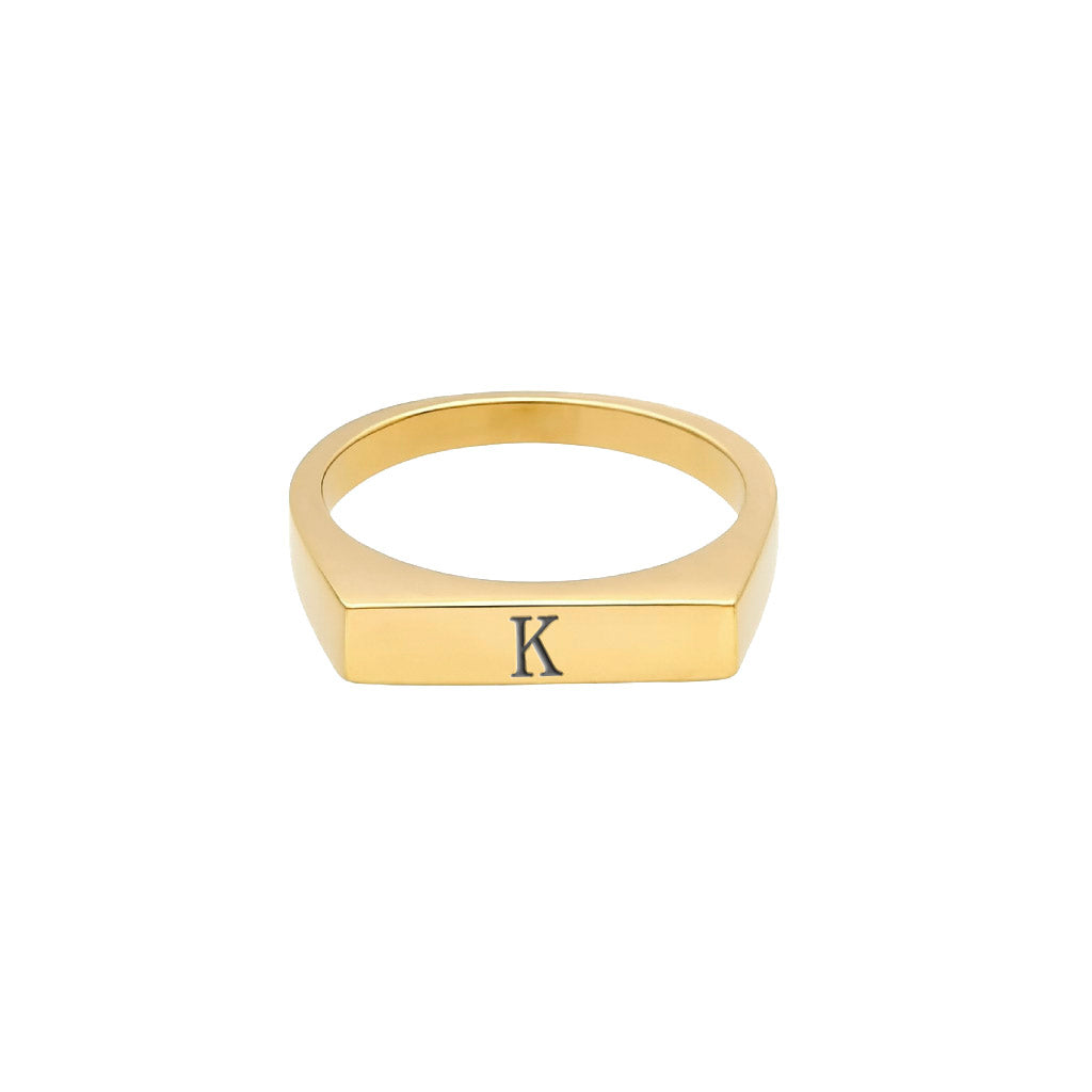Eleganter Siegelring aus Titan, wahlweise in Silber oder 18K Vergoldung, mit feiner Gravur deines Anfangsbuchstabens.