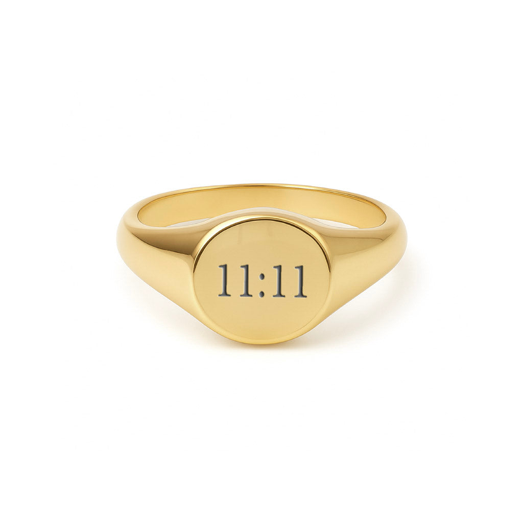 Eleganter runder Siegelring aus Edelstahl, wahlweise in Silber oder 18K Vergoldung, graviert mit deiner persönlichen Engelszahl.